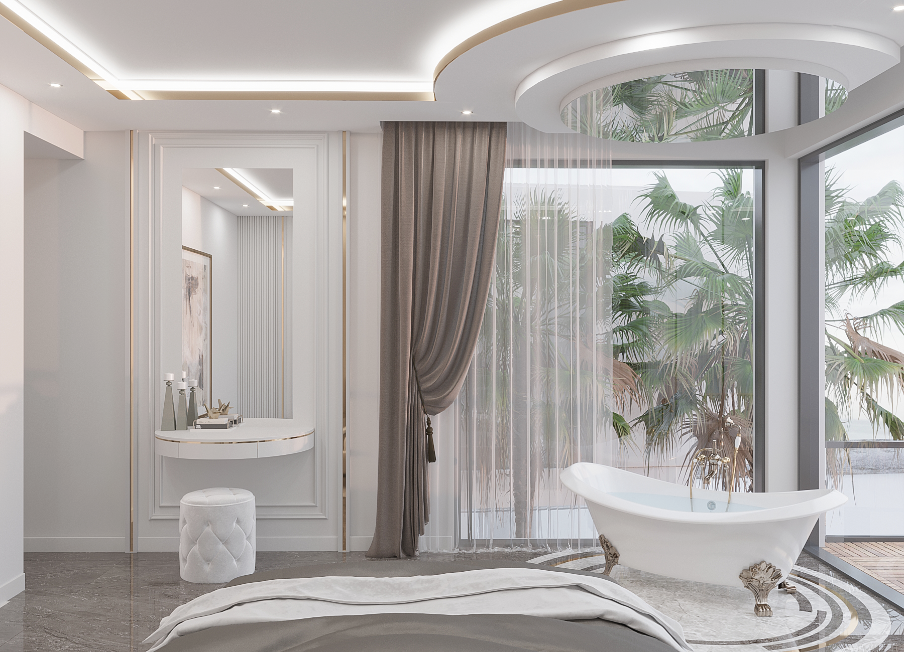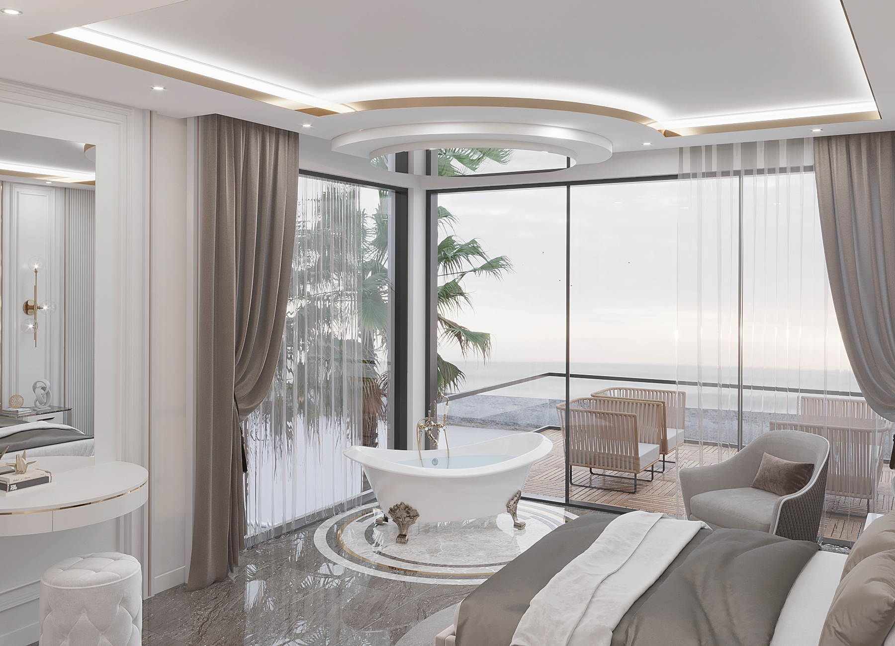- Walking Wardrobe, Bath Tub and Terrace at the Master Bedroom